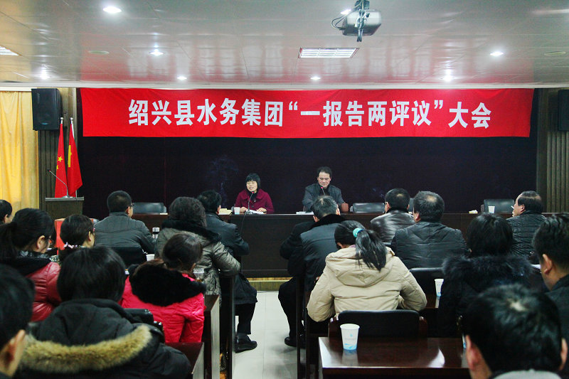 2月16日,集團(tuán)公司召開(kāi)“一報(bào)告兩評(píng)議”大會(huì)。集團(tuán)機(jī)關(guān)全體干部職工,下屬公司班子成員及供水分公司經(jīng)理參加。縣委組織部領(lǐng)導(dǎo)全程參與會(huì)議的指導(dǎo)和監(jiān)督。