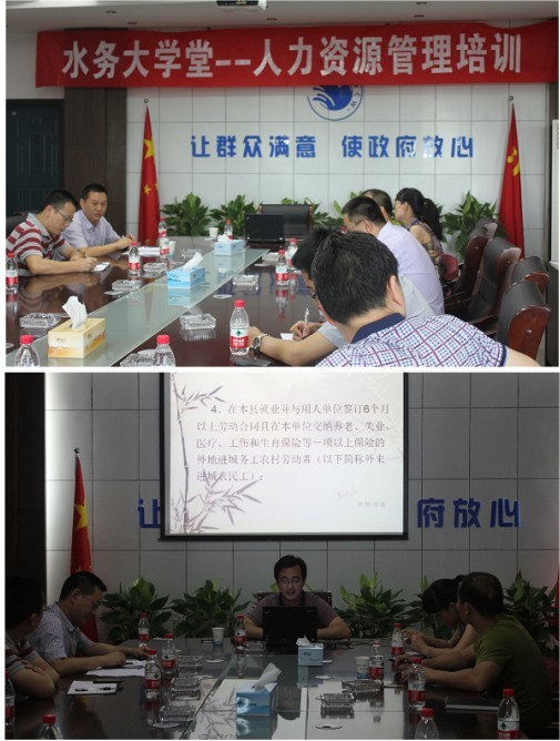 7月19日,縣水務集團第七期水務大學堂在濱海水司辦公樓三樓會議室順利舉行,縣人力資源與社會保障管理局賀東權主任和呂芳科長應邀授課。集團系統(tǒng)各個辦公室主任、分管副主任及人事管理干部共13人參加了培訓。